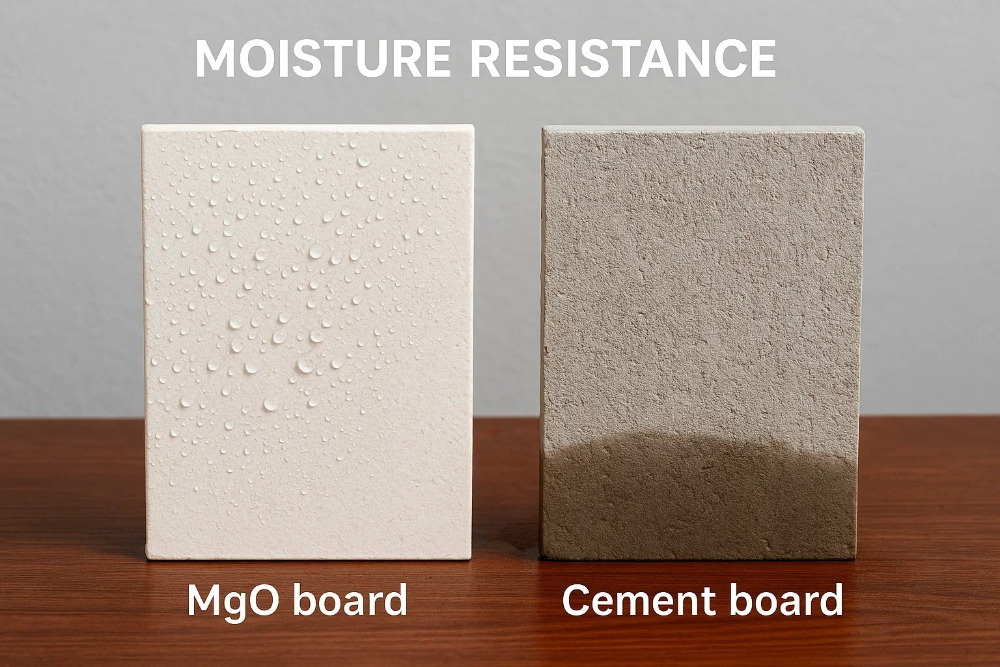 نشان تابلوی سیمان هیئت مدیره پشتیبان (MGO) مادی متخلخل ، واترون-متخلخل ، آب را دفع می کند عایق آب به یک درزگیر یا غشایی ضد آب نیاز دارد قالب/کپک می تواند از قالب بدون ضد آب مقاوم در برابر قالب پشتیبانی کند گسترش مینیمالیمال بهترین استفاده مناطق مرطوب با ضد آب اضافه شده یا مناطق خشک