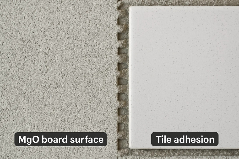 هر دو تخته سطحی عالی برای چسبندگی کاشی ارائه می دهند. تفاوت کلیدی در روش نهفته است. طبیعت متخلخل تخته سیمان به ملات های نازک اجازه می دهد تا از نظر مکانیکی به صورت مکانیکی به سطح وصل شود. برخی از تولید کنندگان توصیه می کنند که سطح را برای کاهش جذب و جلوگیری از خشک شدن خیلی سریع تنظیم کنید و این باعث تضعیف پیوند می شود. سطح صاف و متراکم هیئت مدیره MGO یک پیوند شیمیایی قدرتمند با مجموعه نازک فراهم می کند ، و اطمینان می دهد که کاشی ها به طور ایمن و سالها به طول می انجامند.